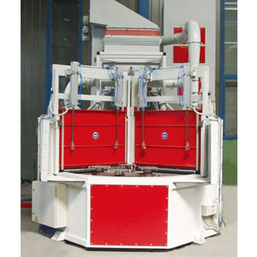 转台式抛丸机适用于铸造及热处理车间清理扁平,薄壁,怕碰撞零件表面的粘砂氧化皮等附着物。通过抛丸清理,可以去除各种工件上的锈蚀,污物等,提高工件的表面质量,同时还可以改善工件的内在应力,达到强化的目的,提高工件的抗疲劳强度。